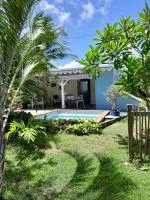 De construction récente , la maison dispose d'une belle terrasse couverte, bien ventilée, où vous pourrez vous détendre en toute intimité. Le "bac à punch" (petite piscine, au sel) vous est est spécialement réservé afin de profiter de moments de détente en amoureux en sirotant des cocktails après de longues journées d'exploration. La chambre, équipée d'un grand lit (160x200) avec télévision,moustiquaire, et la salle d'eau sont climatisées. Vous aurez accès gratuit au wifi avec une connexion haut débit grâce à la fibre optique. Le linge de lit, les serviettes de toilette, de piscine, et les torchons sont fournis.